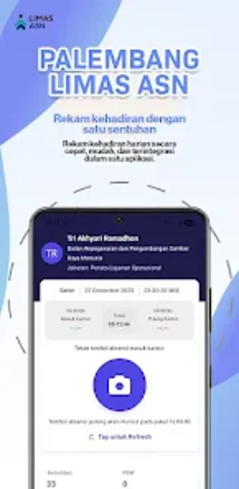 Limas ASN Palembang é um aplicativo desenvolvido para os servidores públicos da cidade de Palembang, focado na digitalização do registro de presença e na gestão de ausências. Com essa ferramenta, os usuários podem registrar sua presença de forma rápida e precisa, além de gerenciar solicitações de férias, licenças e atestados médicos de maneira eficiente. A interface amigável do aplicativo permite que os servidores acessem todas as funcionalidades de forma prática, garantindo que todas as obrigações sejam cumpridas com eficácia.